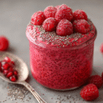 The sweet-tart flavor of fresh or frozen raspberries pairs perfectly with creamy plant-based milk and nutrient-rich chia seeds. It’s naturally sweetened, dairy-free, gluten-free, and packed with omega-3s, fiber, and antioxidants — the perfect solution for busy mornings, healthy snacks, or light desserts.